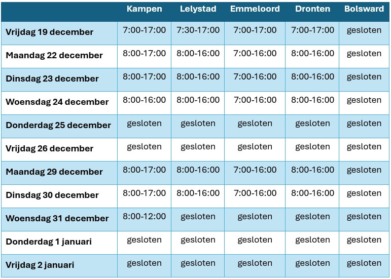 Vanaf vrijdag 19 december tot en met vrijdag 2 januari rijden we geen gasroute. (laatste reguliere route: donderdag 18 december)